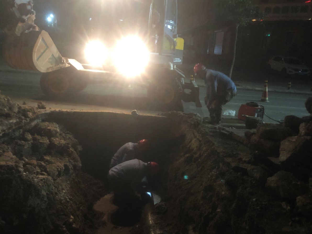 2020年7月6日14時許,在排查過程中發現紅星街處供水管線破裂,為了不影響高考期間供水,我公司立即組織人員搶修,17時完成搶修工作,恢復正常供水。20時左右,又有市民反映西山路處有漏水情況,我公司馬上組織人員檢查,最后發現西山路處一分支管線破裂漏水,為了保障周邊兩個小區的用水,我公司立即維修,23時完成了維修,保障了周邊小區高考期間的安全供水。